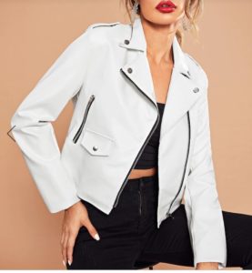 Bílou barvu mám nejraději. Je moje oblíbená. Nejdříve košile, na svetr koženkovou bundu a přes ní vestu. JUPÍ!