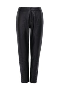 Cítíte-li se pohodlněji v kalhotách, pěkné černé kalhoty doplňte místo bílé košile (kterou nosíte do práce) krásným lesklým topem. Černé kalhoty fungují dobře s většinou barevných kombinací. Zkuste kožené kalhoty, které doplníte zajímavými lodičkami a zlatým psaníčkem